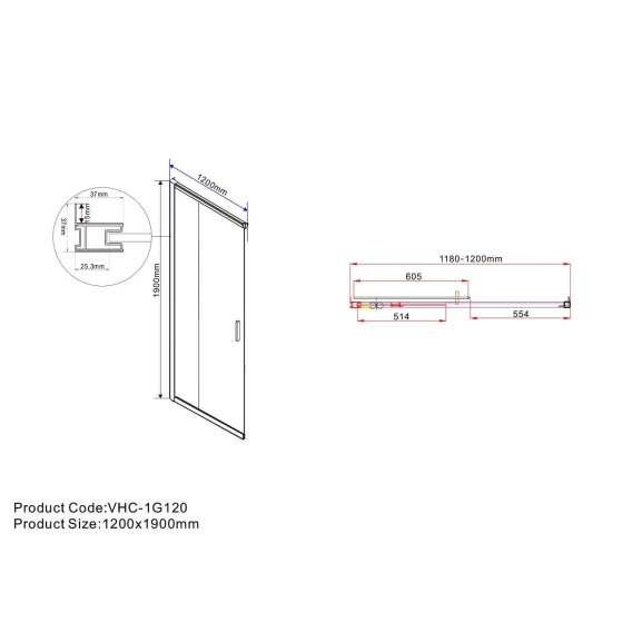 Душевой уголок 120x80 см Vincea Garda VSS-1G8012CLB прозрачное
