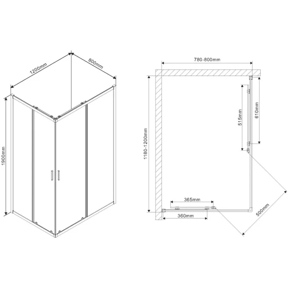 • Регулировочные размеры: 1180 x 1200 – 780 x 800