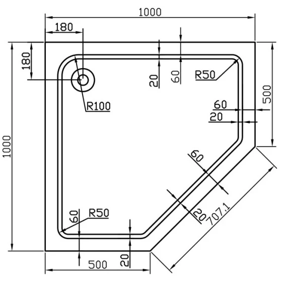 Акриловый поддон 100x100 см Vincea VST-2AP-1010