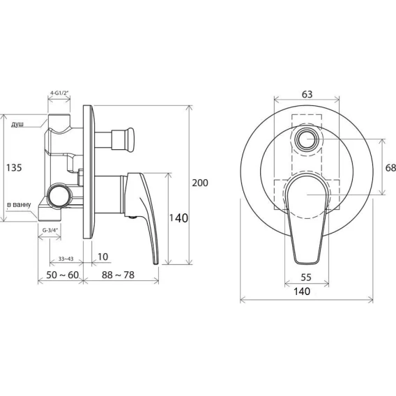 Аэратор, Душевой шланг, Душевая лейка, Подключение для душевого шланга с держателем, Верхний душ, Излив, Скрытая монтажная часть, Смеситель