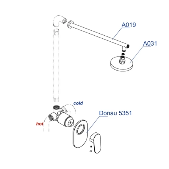 Верхний душ, Скрытая монтажная часть, Смеситель, Кронштейн