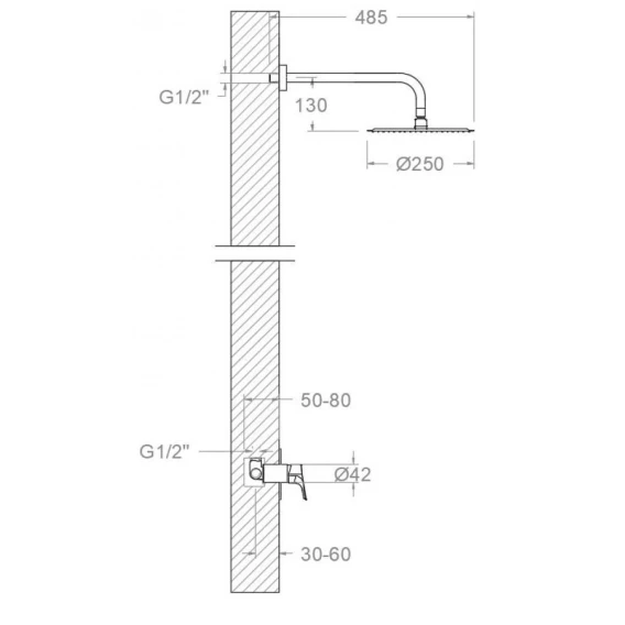 Верхний душ, Скрытая монтажная часть, Смеситель, Кронштейн