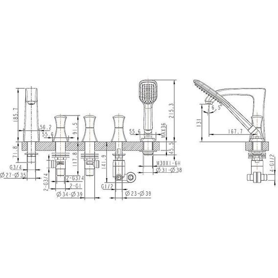 • Поток воды: Излив: 20L/min @ 0.3MPa; Душ: 8L/min @ 0.3 MPa