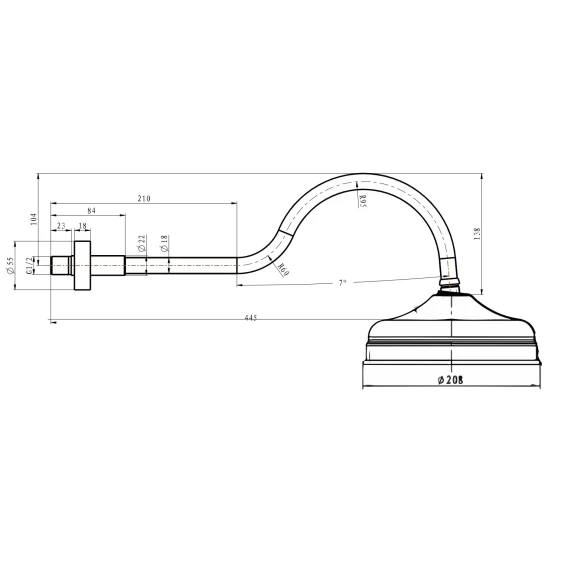 Диаметр верхнего душа 20.8 см