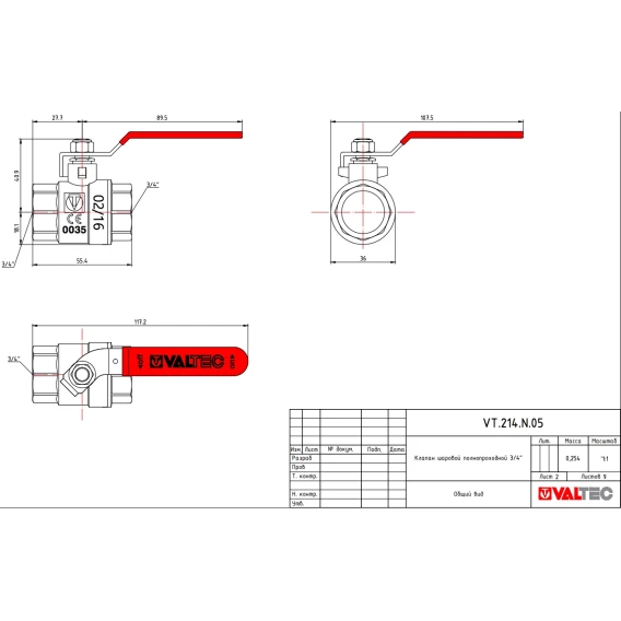 Кран шаровой 3/4" Valtec Base VT.214.N.05