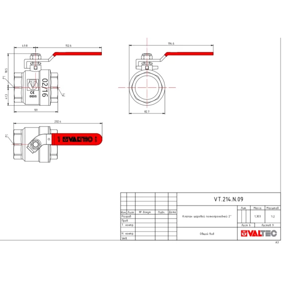 Кран шаровой 2" Valtec Base VT.214.N.09