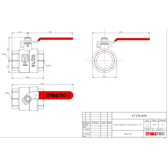 Кран шаровой 2"1/2 Valtec Base VT.214.N.10