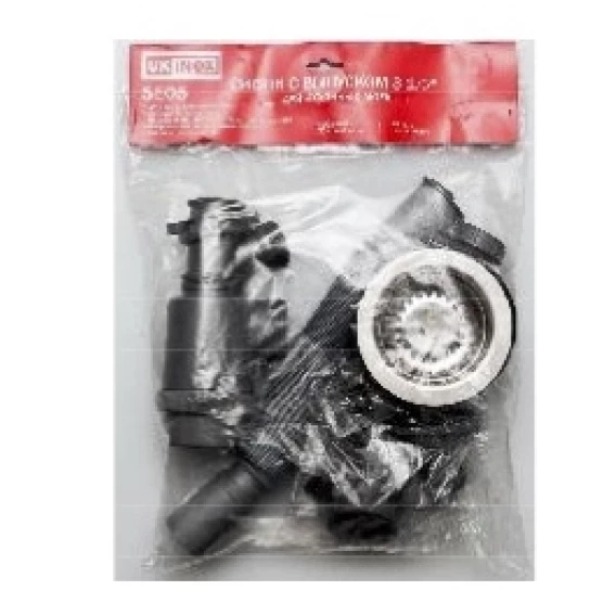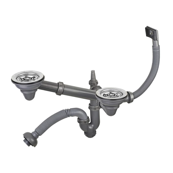 Выпуск большой двойной с переливом в комплекте с сифоном и гофрой Ukinox S805