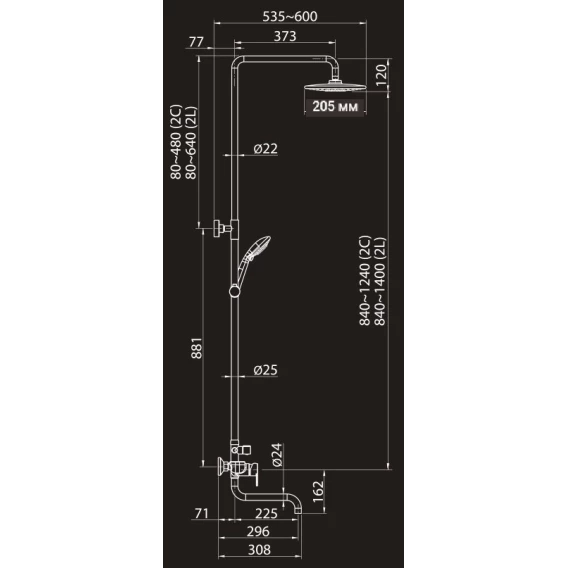 Душевая система 205 мм Elghansa 2304483-2L (Set-24-New)