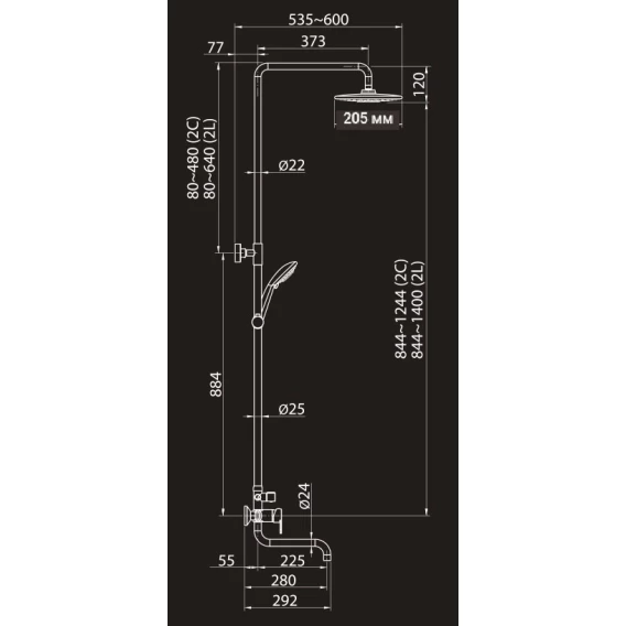 Душевая система 205 мм Elghansa 2306683-2L (Set-24-New)