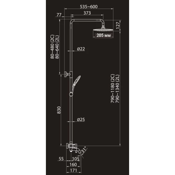 Душевая система 205 мм Elghansa 2330524-2L (Set-24-New)