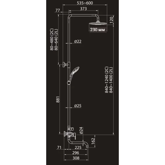 Душевая система 230 мм Elghansa 2304483-2L (Set-21)