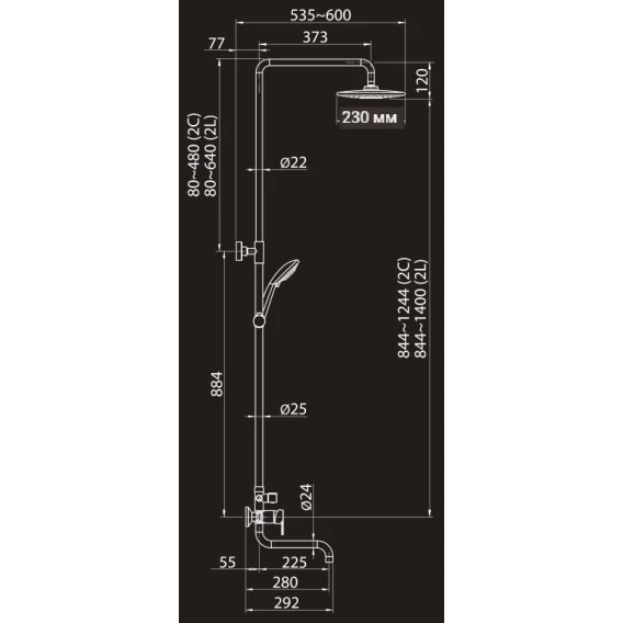 Душевая система 230 мм Elghansa 2306683-2L (Set-21)