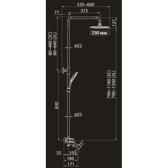 Душевая система 230 мм Elghansa 2330524-2L (Set-21)
