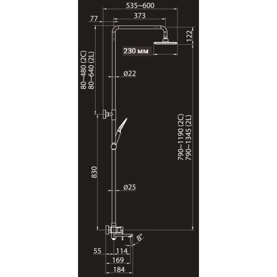Душевая система 230 мм Elghansa 2332269-2L (Set-21)