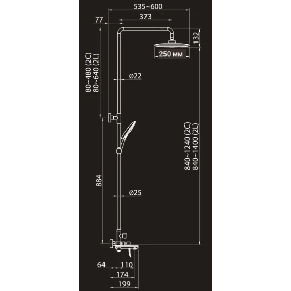 Душевая система 250 мм Elghansa 2305599-2L (Set-13)