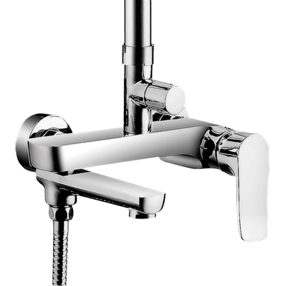 Аэратор, Металлическая розетка, Эксцентрики, Душевой шланг, Душевая лейка, Держатель для душевой лейки, Верхний душ, Смеситель, Кронштейн, Штанга душевая