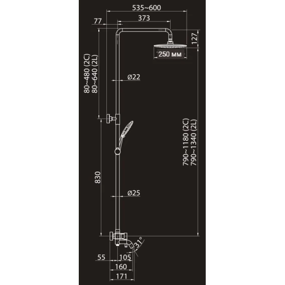 Душевая система 250 мм Elghansa 2330524-2L (Set-13)