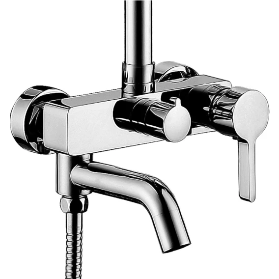 Аэратор, Металлическая розетка, Эксцентрики, Душевой шланг, Душевая лейка, Держатель для душевой лейки, Верхний душ, Смеситель, Кронштейн, Штанга душевая