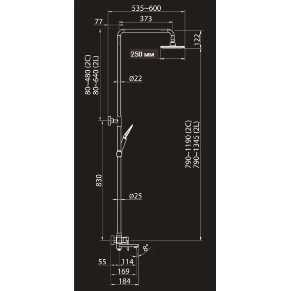 Душевая система 250 мм Elghansa 2332269-2L (Set-13)