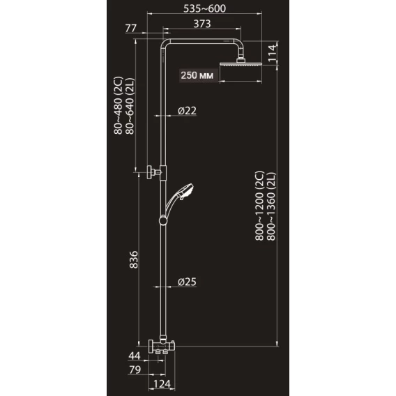 Душевая стойка 250 мм Elghansa 1700172-2L (Set-13)