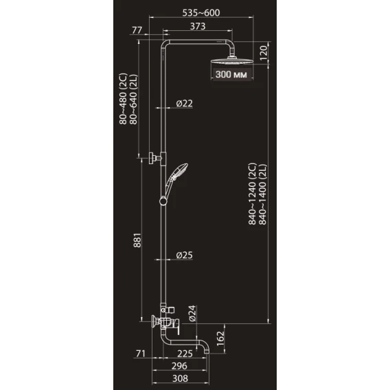 Душевая система 300 мм Elghansa 2304483-2L (Set-18)