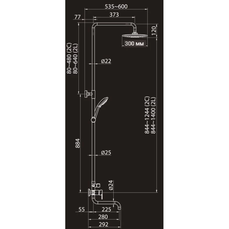 Душевая система 300 мм Elghansa 2306683-2L (Set-23)