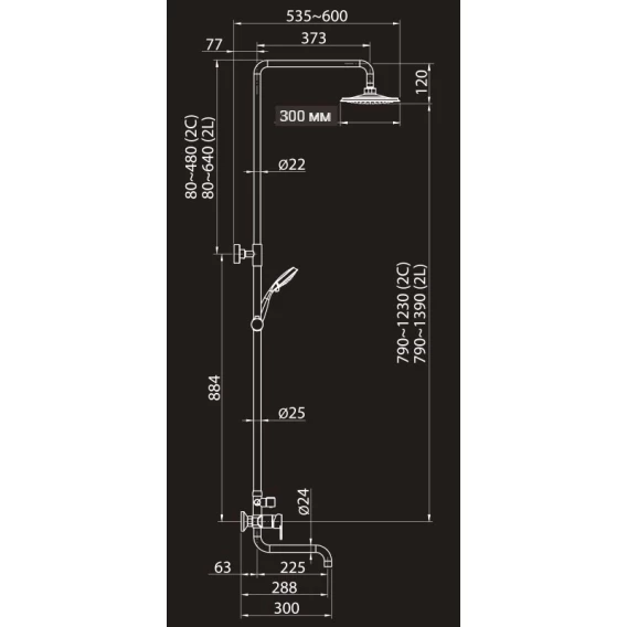 Душевая система 300 мм Elghansa 2308883-2L (Set-18)