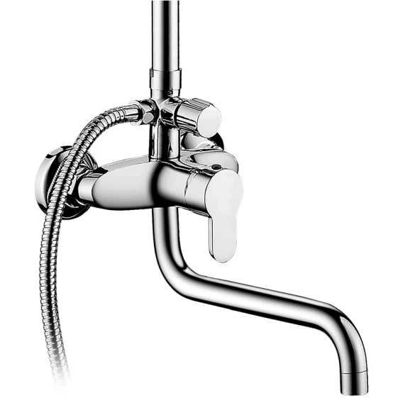 Аэратор, Металлическая розетка, Эксцентрики, Душевой шланг, Душевая лейка, Держатель для душевой лейки, Верхний душ, Смеситель, Кронштейн, Штанга душевая