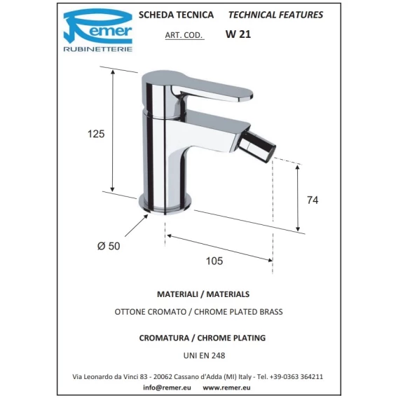 Смеситель для биде без донного клапана Remer Winner W21