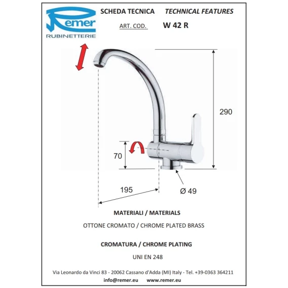 Излив для ванны 170 мм Omnires Parma WDPARMACRB