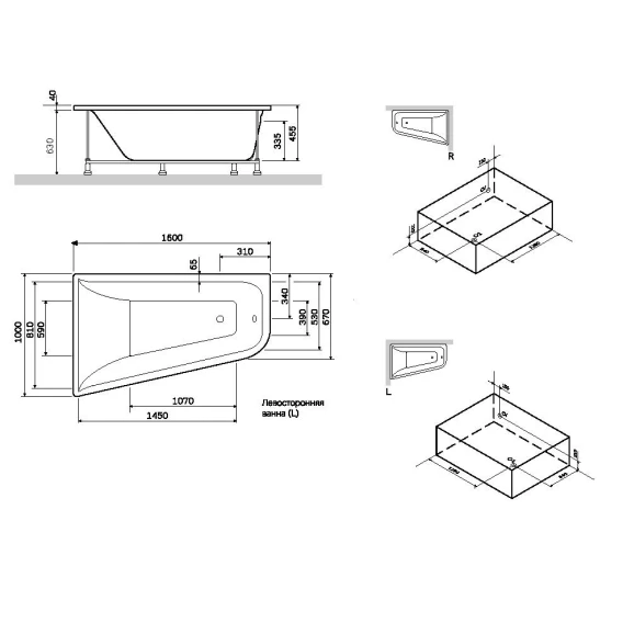 Акриловая ванна 160x100 см R Am.Pm Spirit W72A-160R100W-A2