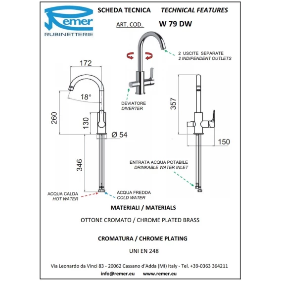 Смеситель для кухни с подключением к фильтру Remer Winner W79DW