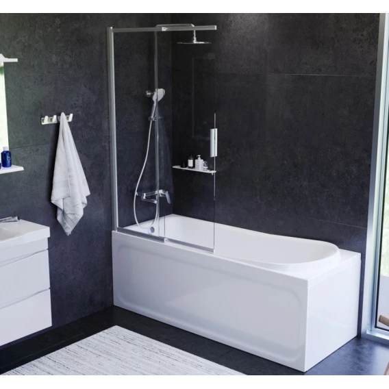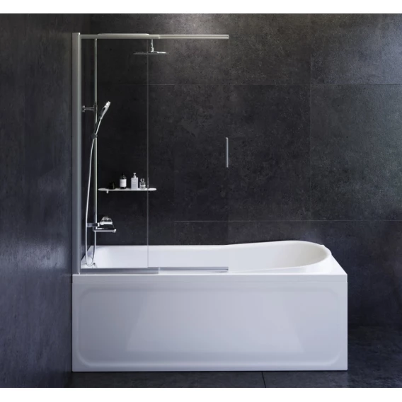 Идеальное решение для ванной комнаты, комплект Like: ванна на каркасе, с душевой шторкой на борт ванны для защиты от брызг и стильная душевая система.Длина шторки изменяемая, за счет сдвижной двери