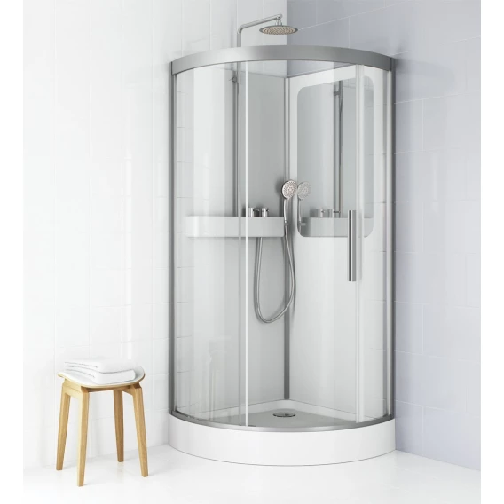Душевой шланг, Душевая лейка, Держатель для душевой лейки, Полочка, Верхний душ, Ручка, Поддон, Смеситель, Сифон, Зеркало