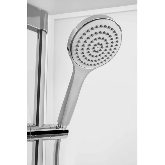 Душевой шланг, Душевая лейка, Держатель для душевой лейки, Полочка, Верхний душ, Ручка, Поддон, Смеситель, Сифон, Штанга душевая, Зеркало