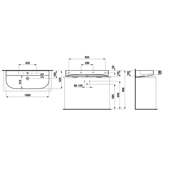 Раковина 100x42 см Laufen Sonar 8.1634.7.000.104.1