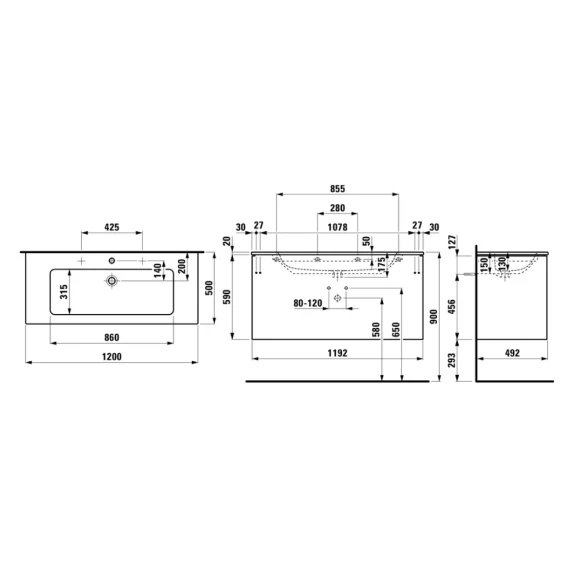 Тумба с раковиной белый глянец 120 см Laufen Base 8.6496.3.261.104.1