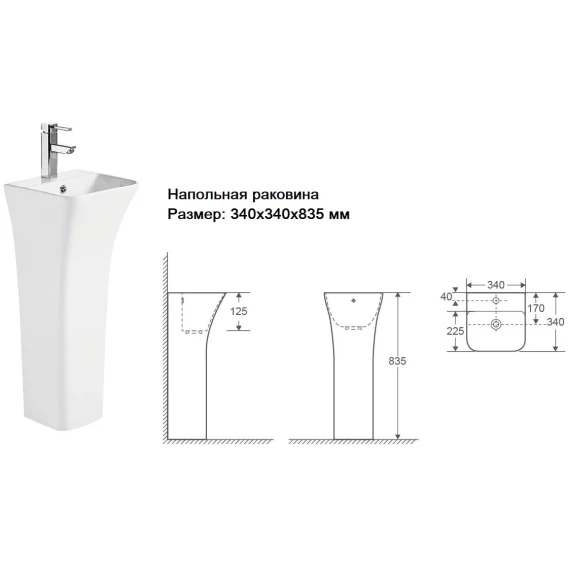 Раковина WeltWasser Leerbach 3434 GL-WT 10000013331 34x34 см, напольная, белый