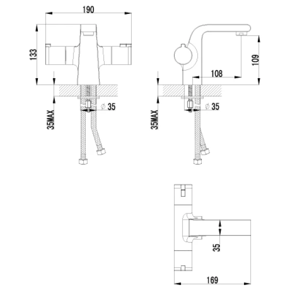 Смеситель для умывальника монолитный термостатический