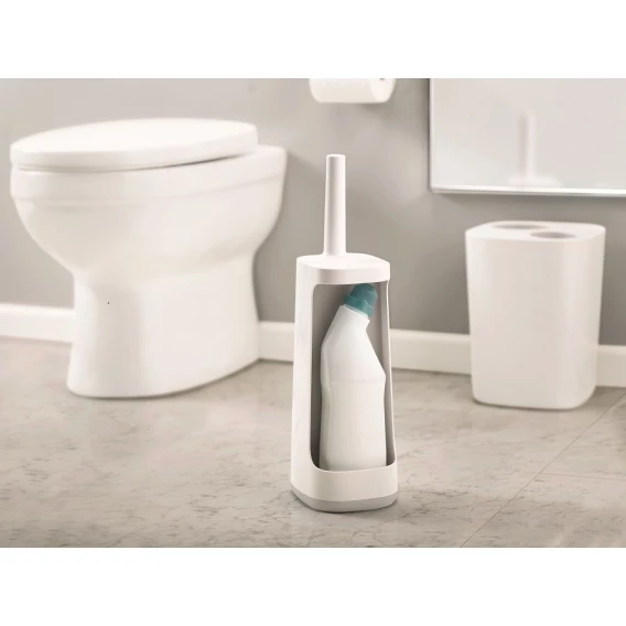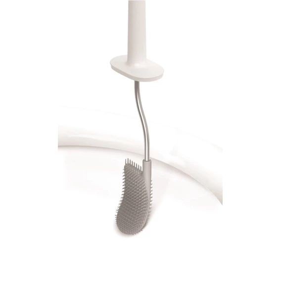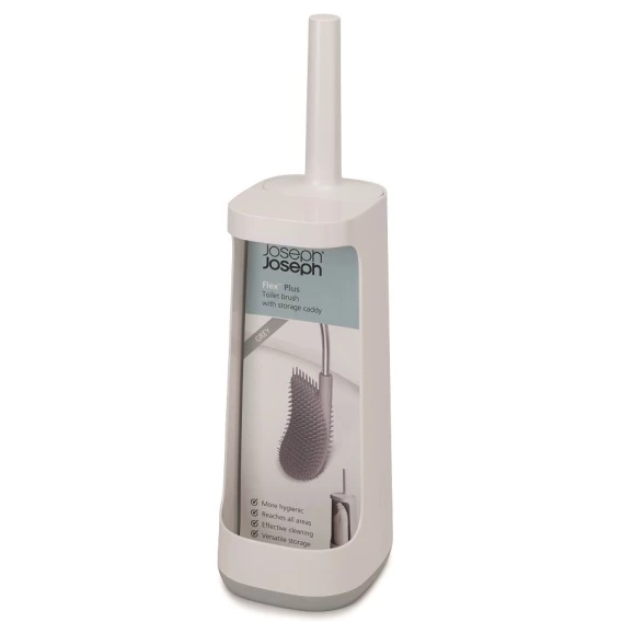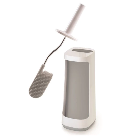 Инновационный аксессуар, который решает все проблемы поддержания чистоты и порядка санузла. Он был создан с учётом всех минусов обычных ёршиков. Теперь так просто поддерживать безупречную чистоту без лишних усилий!Гибкая полимерная щетка эффективно очищает все труднодоступные места и не впитывает воду. Высокотехнологичный материал ёршика не притягивает грязь и его легко мыть. Двухуровневая щетина с большим расстоянием между щетинками не дает грязи скапливаться.После уборки ёршик не надо стряхивать, пытаясь очистить и высушить, благодаря уникальному дизайну Flex™, вода быстро стекает со щетки и не оставляет лишних капель.Удобная и компактная подставка оснащена специальным многофункциональным отсеком, который можно использовать для хранения аэрозолей и моющих средств. Таким образом, они будут спрятаны от постороннего глаза, но останутся под рукой. При уборке с отбеливающими средствами стоит избегать его попадания на ручку из нержавеющей стали.Ванная — одна из наиболее сложных для уборки комнат. Здесь вопрос экономии места особенно актуален. Для создания новых аксессуаров дизайнеры Joseph Joseph руководствовались принципами рационального использования пространства, эргономичностью и удобством сортировки.