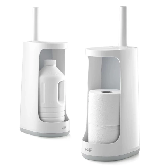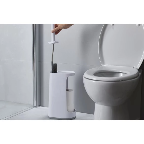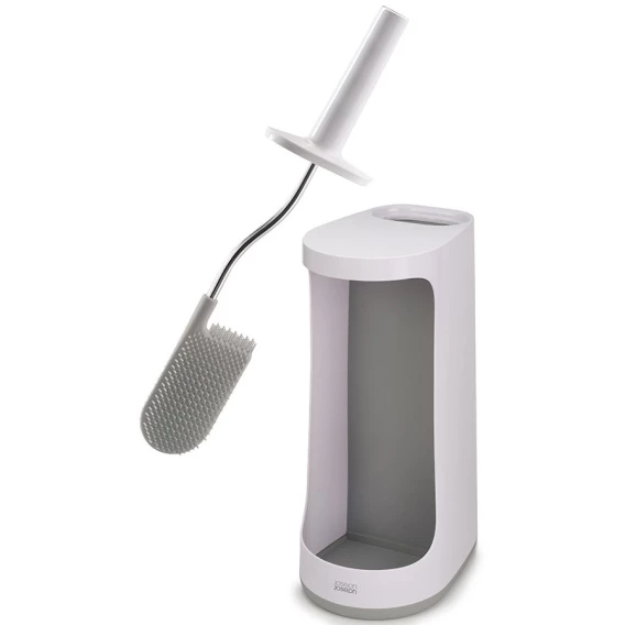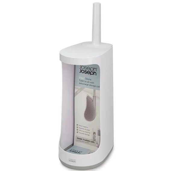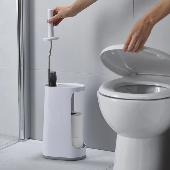 Ёршик для унитаза с большим отсеком для хранения Flex Plus - инновационный аксессуар, который решает все проблемы поддержания чистоты и порядка санузла. Он создан с учётом всех минусов обычных ёршиков. Гибкая полимерная щетка эффективно очищает все труднодоступные места и не впитывает воду. Особенность ёршика – практичная конструкция с защитой от засорения. Широкое расстояние между щетинками не дает грязи скапливаться.После уборки ёршик не надо стряхивать, пытаясь очистить и высушить, благодаря уникальному дизайну Flex™, вода быстро стекает со щетки и не оставляет лишних капель.Удобная и компактная подставка оснащена специальным многофункциональным отсеком, который можно использовать для хранения аэрозолей, моющих средств и туалетной бумаги. Таким образом, они будут спрятаны от постороннего глаза, но останутся под рукой. При уборке с отбеливающим средством стоит избегать его попадания на ручку из нержавеющей стали.