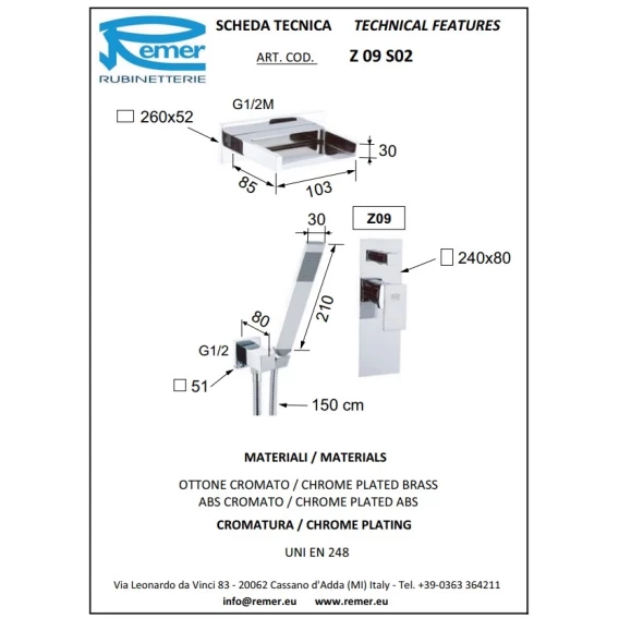 Смеситель для раковины с донным клапаном Remer Liberty 11LICE