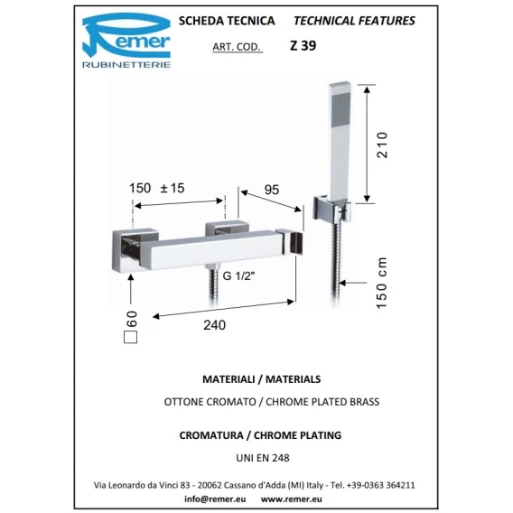 Металлическая розетка, Эксцентрики, Душевой шланг, Душевая лейка, Держатель для душевой лейки