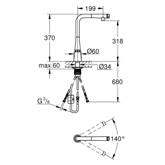 • GROHE Magnetic Docking гарантирует легкое вытяжение и возврат головки аэратора в исходное положение