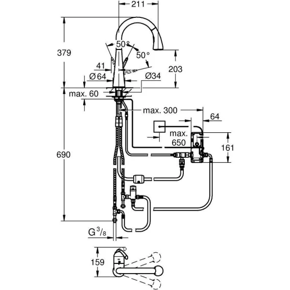 • GROHE Zero изолировал внутренние водные пути - без свинца и никеля внутри смесителя