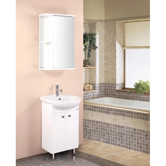 Простой лаконичный дизайн навесного зеркального шкафа Onika КАРИНА 45 с легкостью впишется в любой интерьер ванной комнаты и поможет содержать в порядке необходимые вещи.Открытые полочки обеспечивают быстрый доступ к часто используемым аксессуарам, а пространство за распашной зеркальной дверцей с механизмом плавного закрывания, разделенное полочкой, станет удобным местом для хранения различных бытовых принадлежностей.Зеркальное полотно создано на основе серебряной амальгамы, которая обеспечивает качественное изображение, влагостойкость и долгий срок эксплуатации.Шкаф имеет универсальную ориентацию: верх и низ шкафа можно менять местами, а дверца может открываться как влево, так и вправо.Корпус шкафа-зеркала выполнен из ЛДСП, фасад - из ЛДСП и ЛМДФ в пленке, устойчивых к механическим воздействиям, перепадам температур и высокой влажности.Подвесы для крепления шкафа - в комплекте.