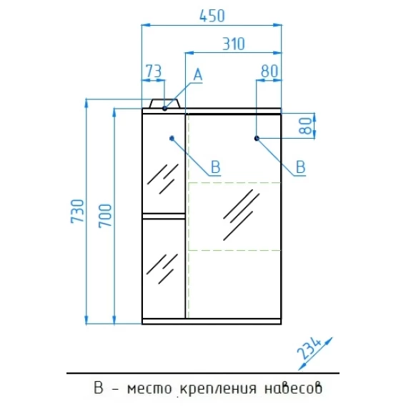 Зеркальный шкаф 45x73 см белый глянец Style Line Николь ЛС-00000115