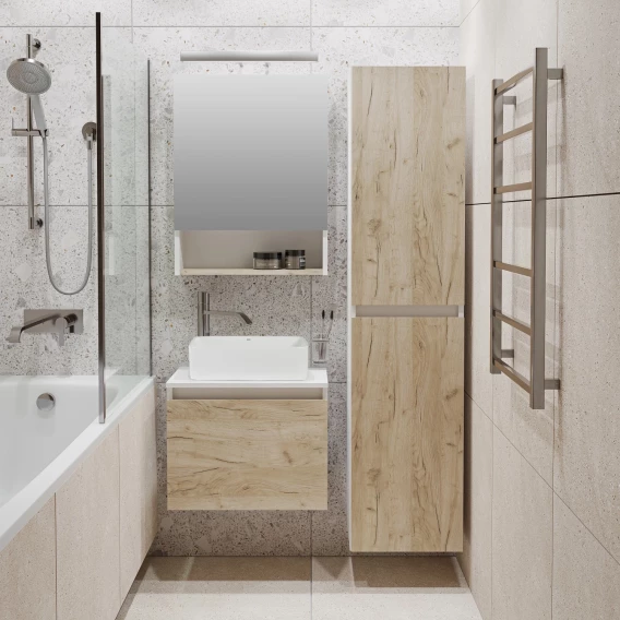 Зеркальный шкаф 50x65 см дуб крафт/белый R Runo Бари 00-00001381