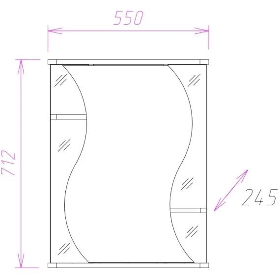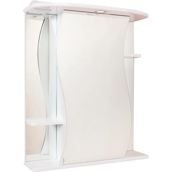 Навесной зеркальный шкаф ЛИЛИЯ 55 способен преобразить ванную комнату: эстетика изогнутой линии воплощается в мягкой волнообразной форме дверцы и исполняет роль основного выразительного элемента для интерьера помещения.Пространство за распашной зеркальной дверцей с механизмом плавного закрывания станет удобным местом для хранения различных бытовых принадлежностей. 2 открытые полочки, распложенные на разной высоте, созданы специально для хранения часто используемых вещей. Зеркальное полотно создано на основе серебряной амальгамы, которая обеспечивает качественное изображение, влагостойкость и долгий срок эксплуатации.Источник света шкафа - врезной светодиодный модуль, дополненный механическим выключателем и встроенной розеткой.Корпус шкафа-зеркала выполнен из ЛДСП, фасад - из ЛДСП и ЛМДФ в пленке, устойчивых к механическим воздействиям, перепадам температур и высокой влажности.Подвесы для крепления шкафа к стене - в комплекте.